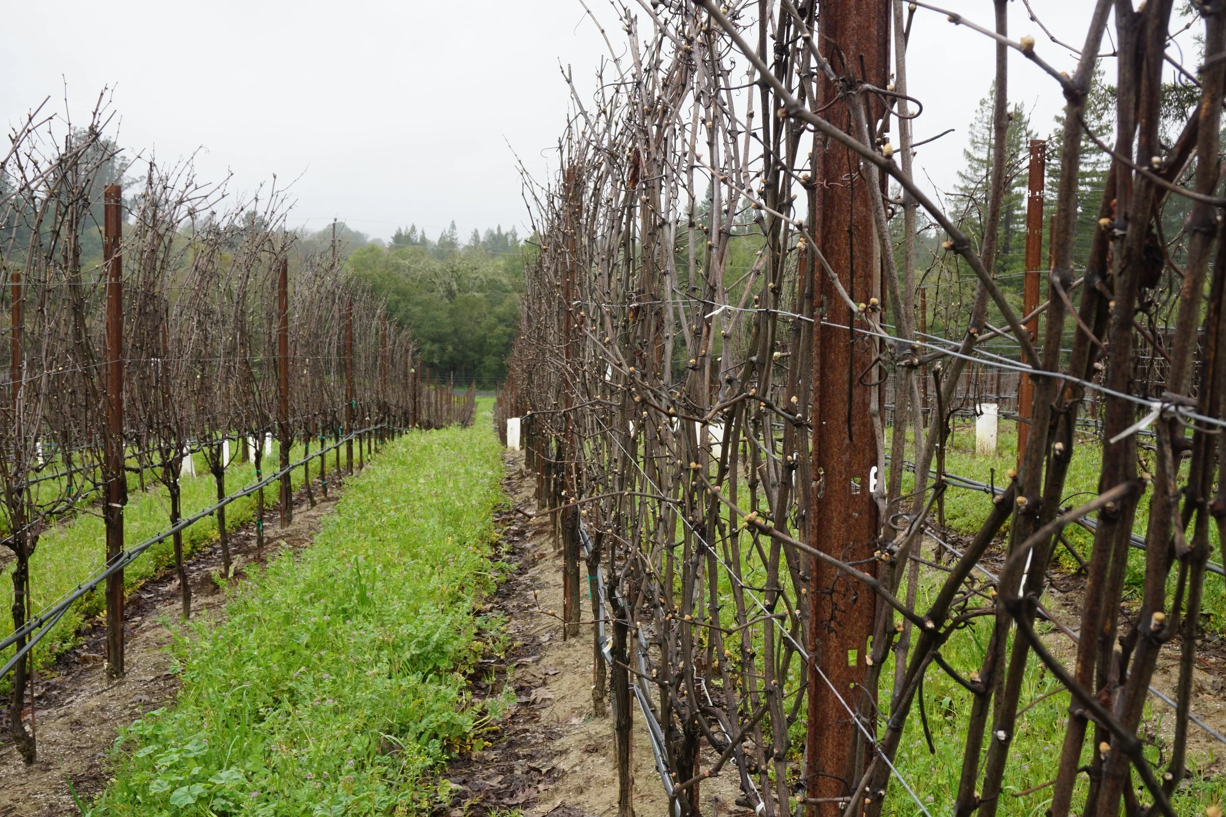 In one block, we have decided to graft the existing Pommard to a new grape clone. Decisions are still being made, and we will talk about that more when the grafting happens in April. The crew will wait to rough-prune these vines until a couple of weeks before the grafting work is done to release water pressure on the plant. Then they will cut the tops off and graft on the new grape clone.