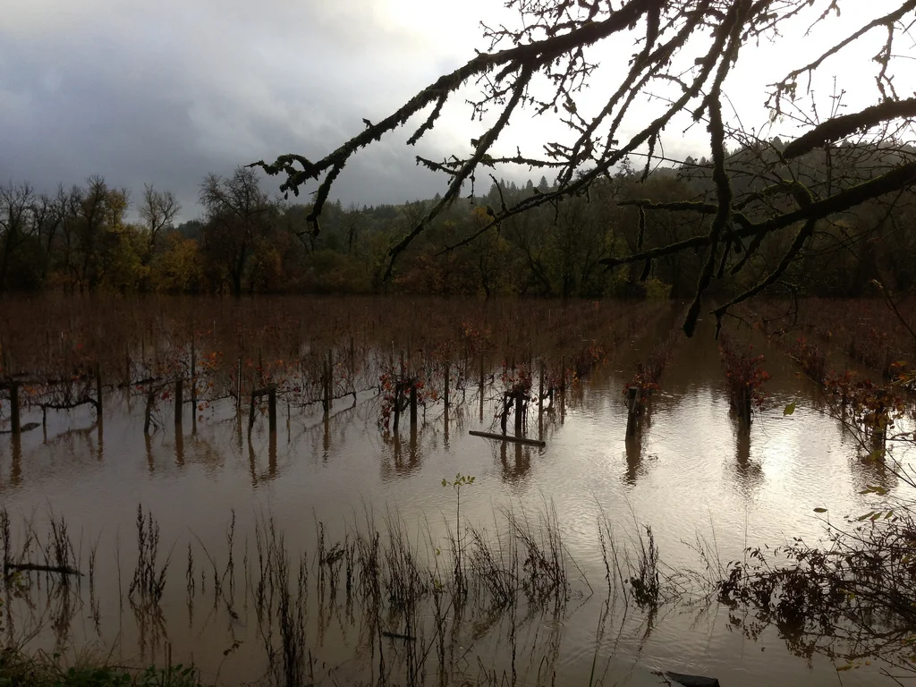We here at Gantz Family Vineyards received a series of storms over the last week that reminded us that we really were living in the country. Sonoma County got about a foot of rain and more than 20,000 people lost power. Fortunately, the vineyard was unaffected by the heavy downpour. Our property is spread over a low hill that gradually slopes away on all sides, so we experienced none of the flooding that plagued many of our neighbors. And because of our Goldridge soil, which is sandy and loamy, we don’t have any standing water. Clay and I did spend a few hours Sunday evening reading by candlelight (and iPad) before we got our power back.