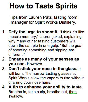 We stopped into the distillery’s industrially cool tasting room last week and enjoyed half-ounce tastings with their engaging and incredibly informative tasting room manager, Lauren Patz.